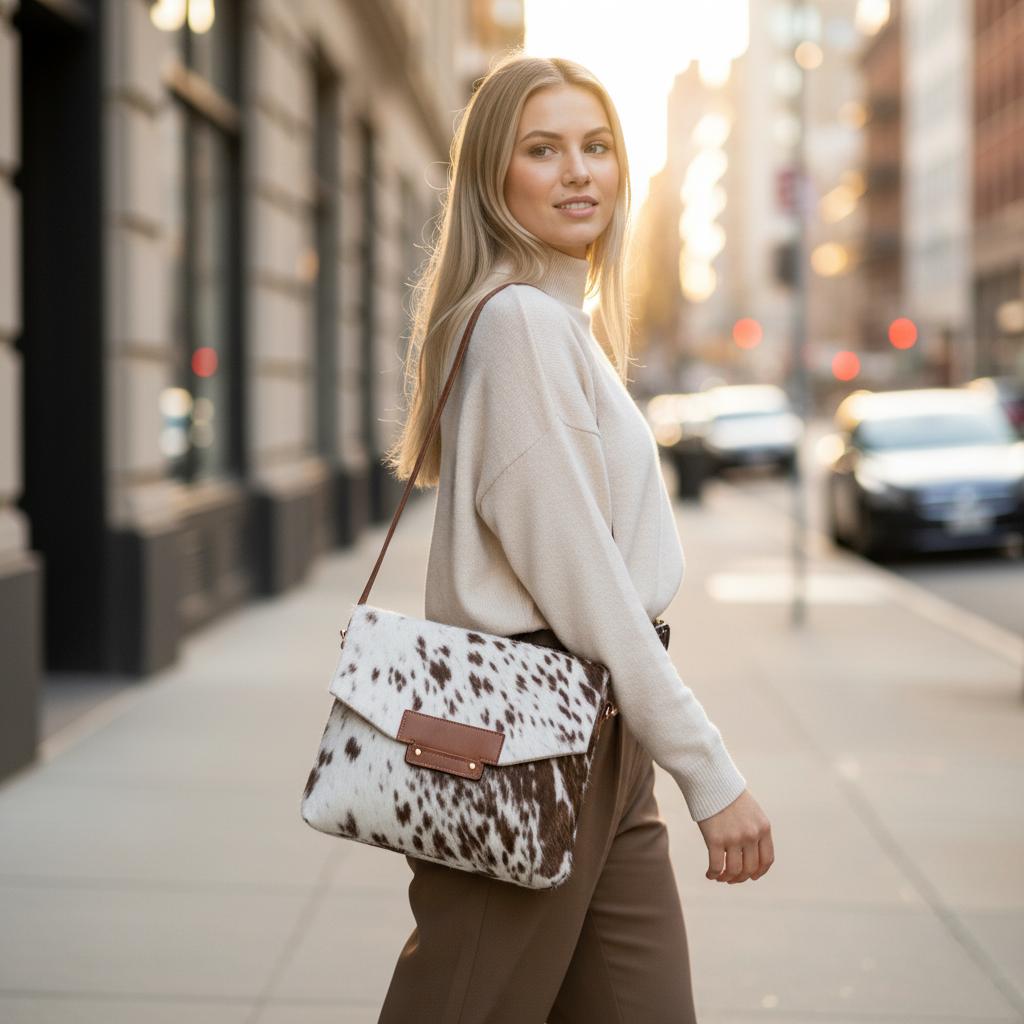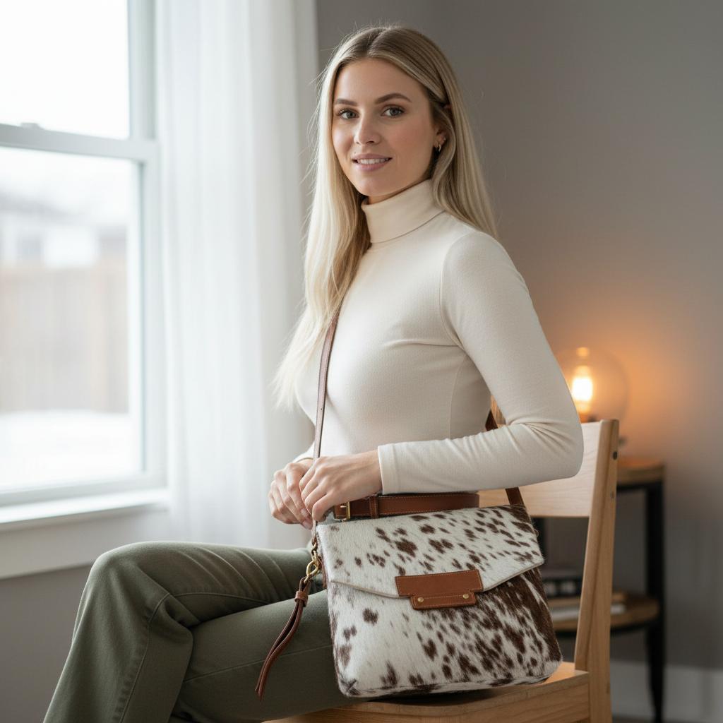 Each Roxana Cowhide Belted Bag is carefully crafted from premium natural cowhide, ensuring a distinctive look and exceptional durability. Every piece is custom-made, with close attention to detail to achieve the best possible pattern match. Designed for both style and function, this bag offers a unique blend of elegance and authenticity. We’re confident you’ll appreciate the superior craftsmanship and quality that set our bags apart.