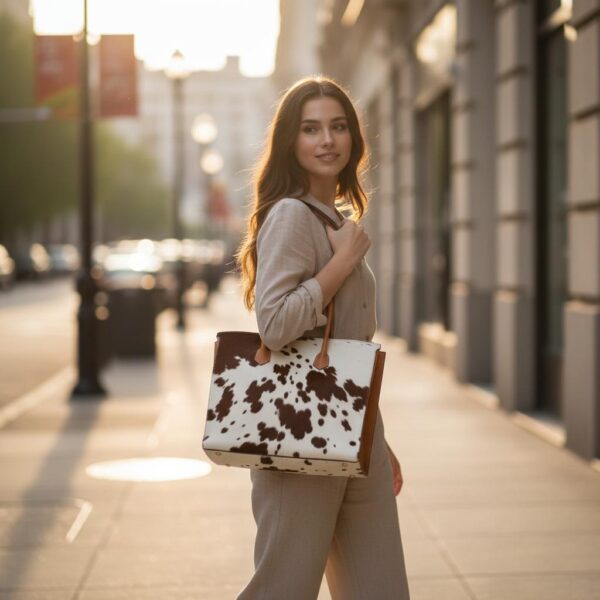 Genuine Cowhide Tote Bag – Leather Shoulder Handbag for Women
