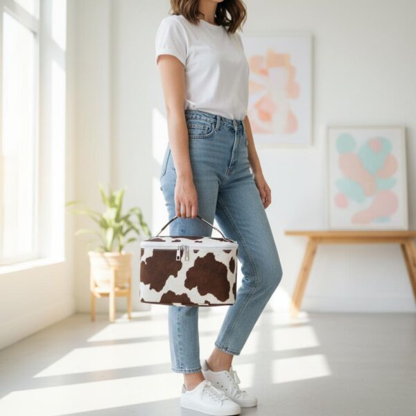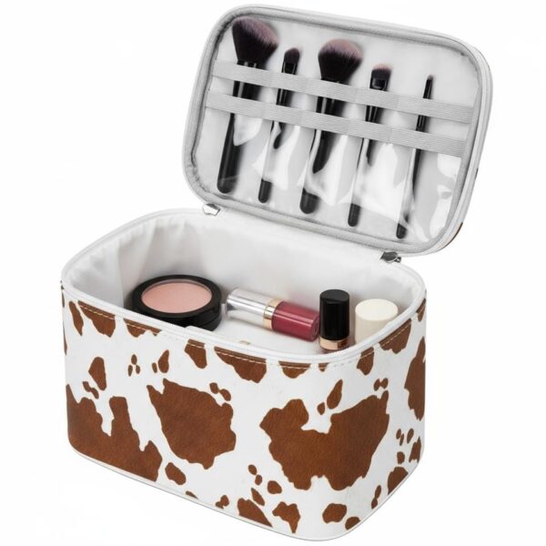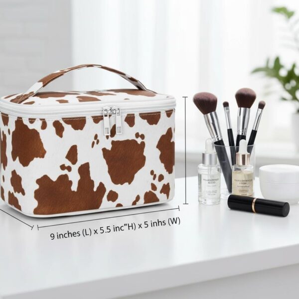 makeup bag is super cute, I’m really liking the cow print! It seems pretty roomy for how compact it is, which is a definite plus for travel. The zipper feels sturdy enough, totally glad I grabbed this.