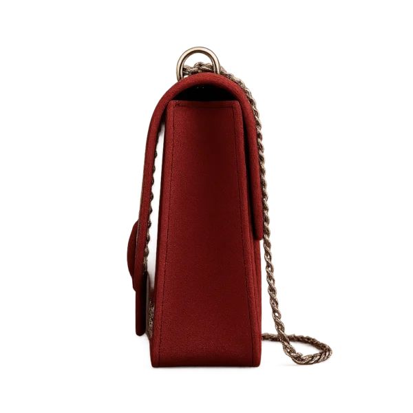 This little red bag is actually really sharp looking! The suede material feels nice, and the silver chain detailing definitely makes it stand out. It’s a good size for just carrying the essentials when you’re heading out. Totally happy with this purchase!